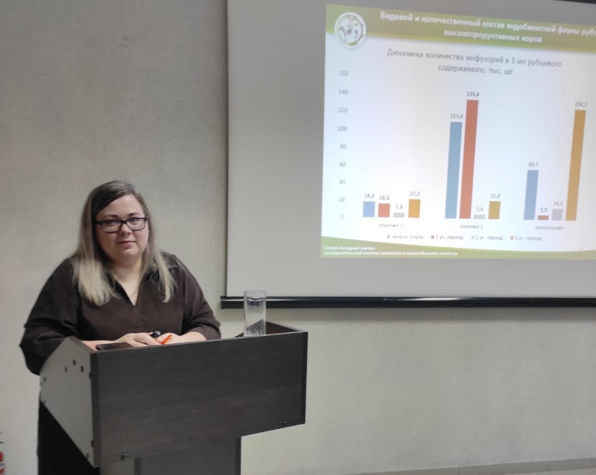 Начальник отдела с.-х. консультирования и сводной отчетности БУ АПК ВО «Вологодский ИКЦ агропромышленного комплекса, к.с.-х.н. Д.В. Шестаков, выступивший в качестве эксперта, оценил доклад на высоком уровне. Приглашенные на семинар рецензенты ведущий научный сотрудник к.с.-х.н. А.В. Ерегин и научный сотрудник М.О.Селимян отметили актуальность и содержательность выступления. В качестве рекомендаций для дальнейшей работы над исследованием были высказаны предложения по более детальному анализу показателей молочной продуктивности и оценке микрофлоры рубца. Эти предложения, безусловно, помогут в дальнейшем развитии темы и повышении практической ценности исследования.