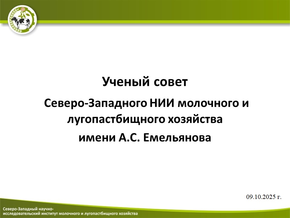 09 октября 2025 года состоялось заседание Ученого совета, на котором были представлены результаты научно-исследовательской работы СЗНИИМЛПХ за 2025 год.