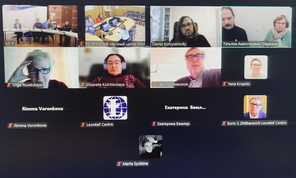 Открыли мероприятие директор Леонтьевского центра д.э.н., профессор Леонид Эдуардович Лимонов и заместитель директора по научной работе ВолНЦ РАН к.э.н., доцент Ольга Николаевна Калачикова. Во вступительном слове они подчеркнули значимость проекта, масштаб проведенной исследовательской работы и обозначили ключевые цели предстоящей дискуссии.