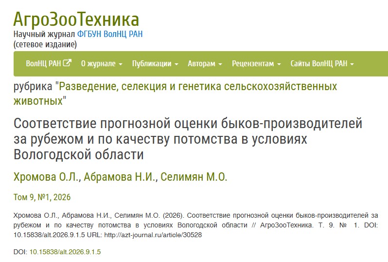 Исследование проводили по быкам-производителям, рожденным и получившим прогнозную оценку в США, которые использовались в племенных хозяйствах Вологодской области. Оценку быков по качеству потомства методом «дочери-сверстницы» рассчитывали по продуктивным признакам дочерей - 1502 голштинизированных коров 1-го отёла черно-пестрой породы племенных хозяйств региона. В исследовательскую выборку включали быков с количеством дочерей не менее 15 голов.