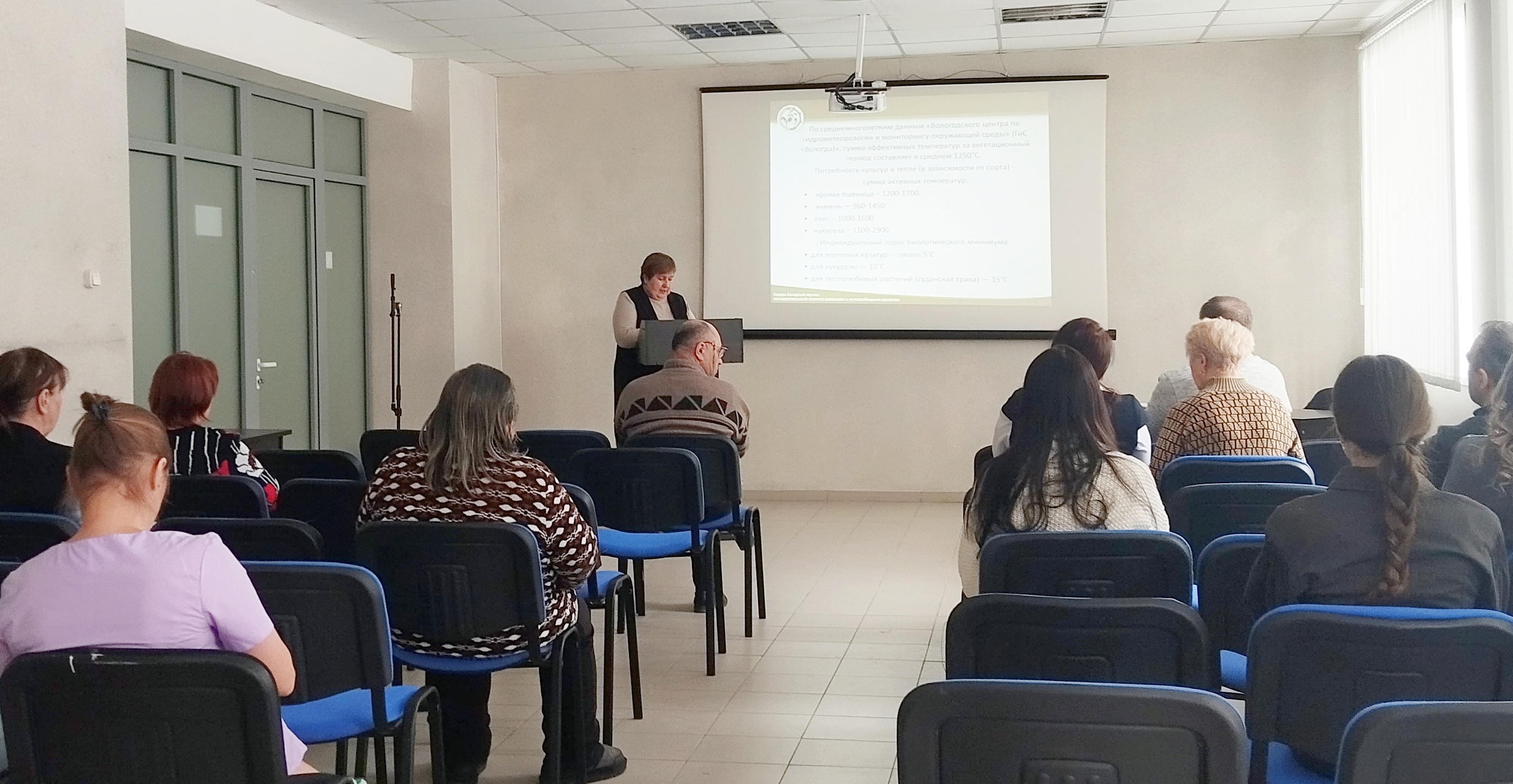 Докладчиком представлен анализ динамики набора кормовых культур и сортов, возделываемых в Вологодской области, за период с 2000 по 2024 год: данные о посевных площадях, урожайности, сортовом составе культур и погодных условиях. Подчеркнута связь между кормовой базой и главной отраслью региона – молочным животноводством.