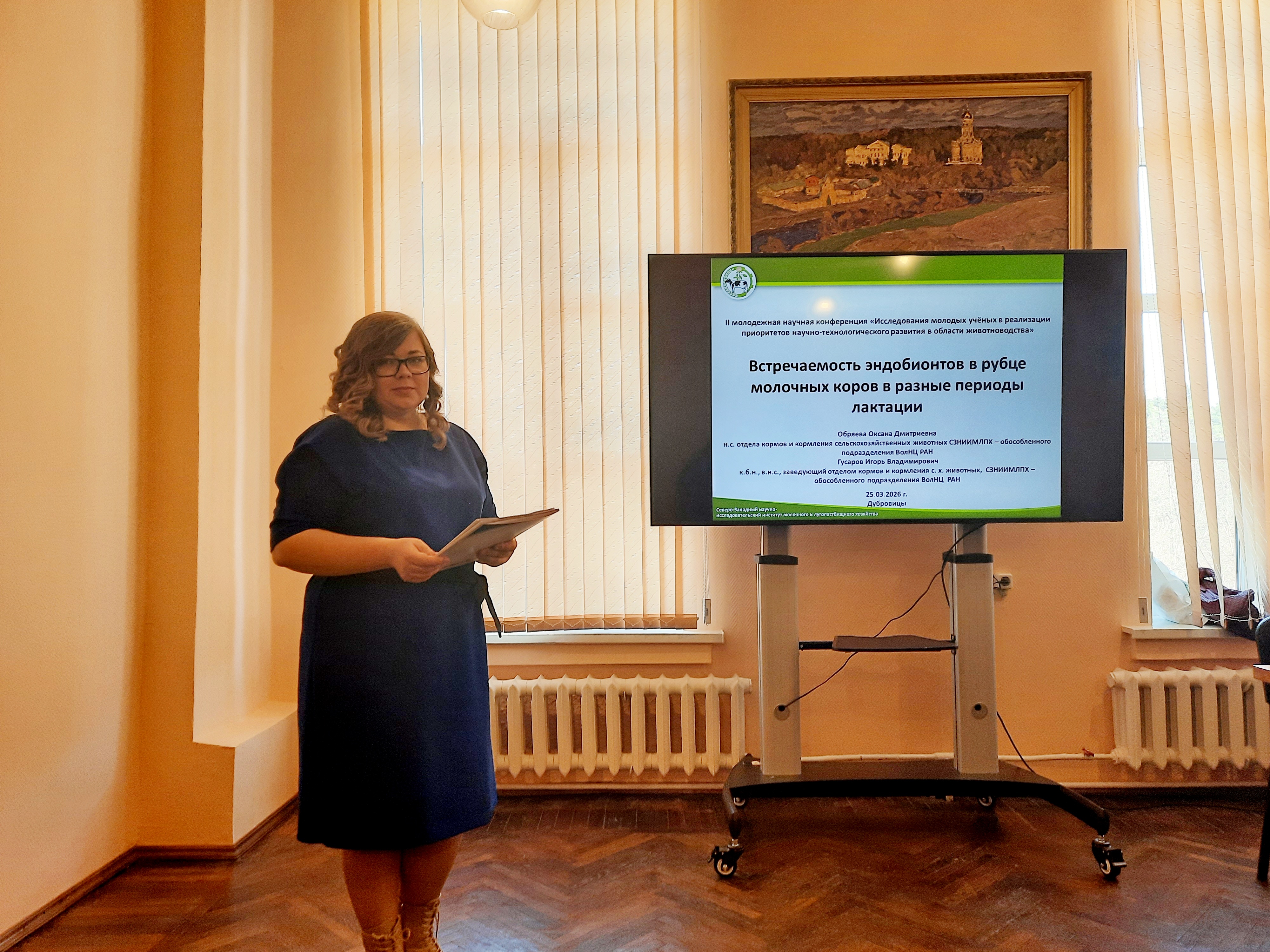 Оксана Дмитриевна выступила с докладом на тематической секции «Физиология человека и животных». Она представила результаты исследований о встречаемости эндобионтов в рубце молочных коров. Участники дискуссии отметили актуальность данного направления для лучшего понимания процессов, происходящих в рубце. Доклад О.Д. Обряевой был признан лучшим на секции и отмечен памятным подарком.