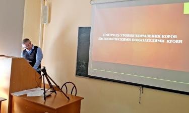 В секции «Зоотехния» под научным руководством к.с.-х.н. доцента Третьякова Е.А. приняли участие четверо студентов-магистрантов, закреплённых за базовой кафедрой «Научно-практическое обеспечение животноводства»: Копытова Е.В. «Сравнительная характеристика кур кроссов «Хайсекс коричневый» и «Хайсекс белый», Третьякова Ю.А. «Сравнительная продуктивность основных молочных пород РФ», Хамова М.В. «Поголовье КРС в племенных хозяйствах Северо-Запада России», Серов А.В. «Контроль уровня кормления коров биохимическими показателями крови».