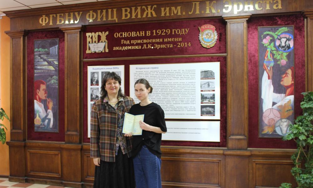 По итогам обучения сотрудникам выданы удостоверения: Селимяну М.О. по программе «Введение в биоинформационный анализ данных полногеномного SNP-генотипирования», Ивановой Д.А. по программе «ДНК-технологии в животноводстве».