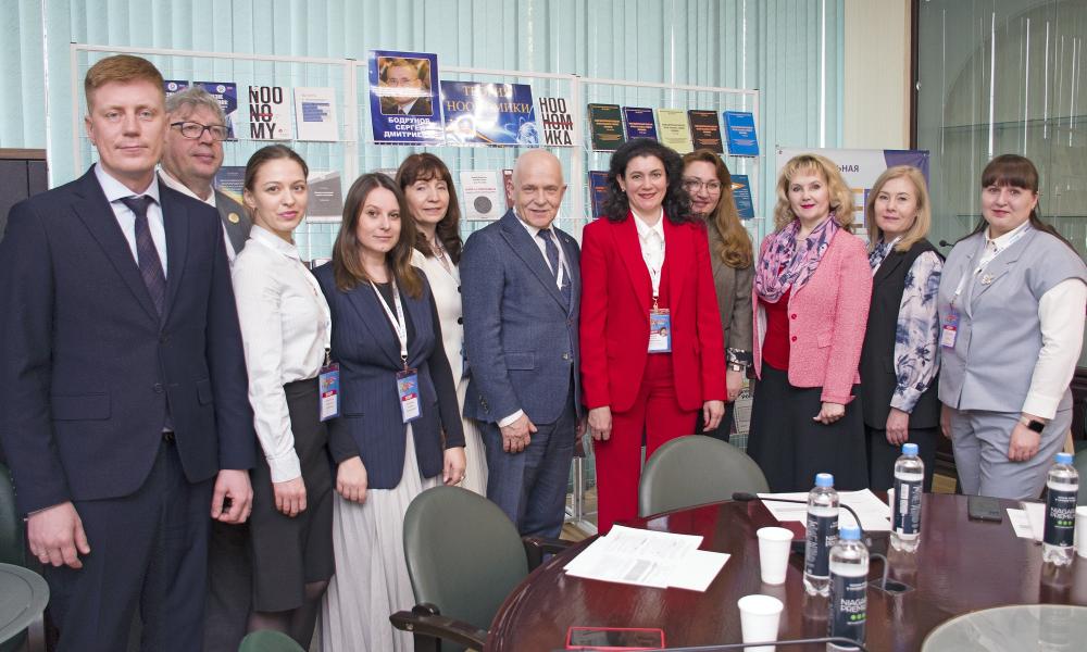 По приглашению Уральского государственного экономического университета первый заместитель директора ВолНЦ РАН к.э.н. Л.В. Бабич вошла в состав жюри международного конкурса научно-исследовательских работ «Теория ноономики как ключ к исследованию социально-экономических трансформаций XXI века», финал которого состоялся в рамках XVI Евразийского экономического форума молодежи 22 апреля 2026 года. В этом году на конкурс было представлено 87 научных работ. Участники исследовали вопросы перехода к новому индустриальному обществу второго поколения, диалектику симулятивных и несимулятивных потребностей, роль искусственного интеллекта в формировании новой экономической парадигмы, трансформацию труда в эпоху шестого технологического уклада и глубинную интеграцию производства, науки и образования.