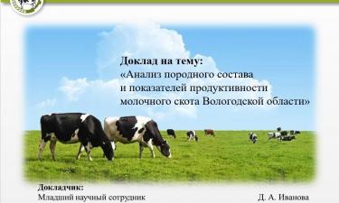 Докладчиком представлен анализ количественных и качественных характеристик молочной продуктивности коров, а также породный состав молочного скота региона за пятилетний период времени. Исследования проведены с использованием статистического материала ежегодников по племенной работе в молочном скотоводстве в хозяйствах Российской Федерации. В ходе семинара, докладчиком отмечены как положительные результаты, так и негативные моменты в молочном животноводстве Вологодской области.